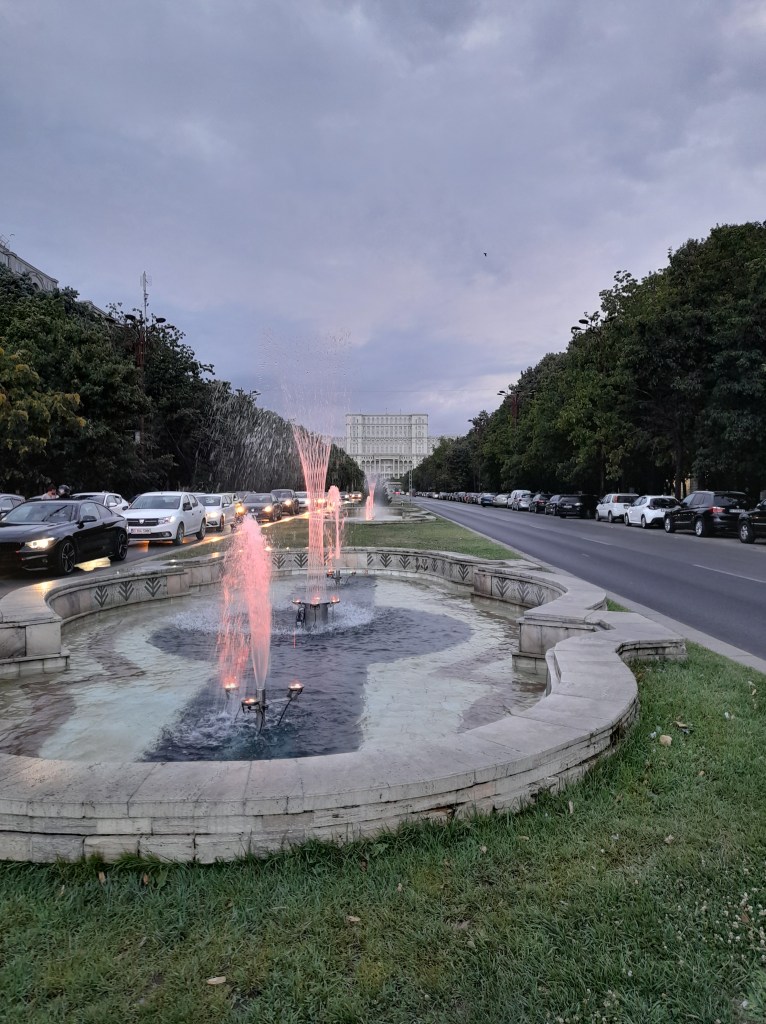There are 6 sectors here in Bucharest. There is a road which circles the city and then roads leading to the center. We drove along an area which had water fountains all along. I imagine it is very beautiful at night but I was only out until dusk because I was so tired. Late getting this out so more to come this weekend.