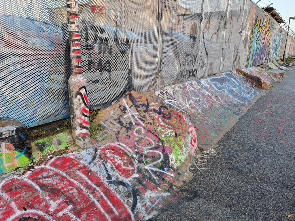As I have been extending my walks, I find new and interesting things such as this walking area, which is full of graffiti but is a skateboarding area. I’m not sure how often it is used now, but there are ramps and such for the skateboarders. Some are crumbled and broken, but I thought it was a pretty cool idea. It makes a walking path for other purposes since there are some schools nearby, so it made sense.
